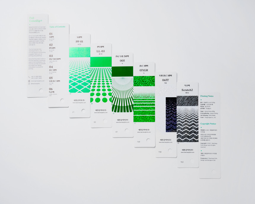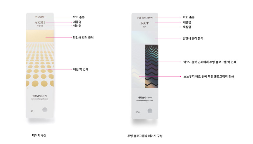 포일 컬러집은 포일의 정확한 색상 확인과 박 인쇄 정보를 기본으로,